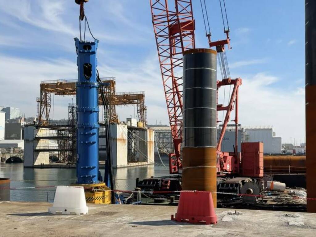 Le operazioni di fondazione speciale procedono con l’esecuzione dei diaframmi e dei pali di grande diametro che costituiscono l’ossatura strutturale del nuovo bacino. I diaframmi, realizzati tramite scavo con benna meccanica, raggiungono profondità tra 19 e oltre 30 metri e garantiscono sia la tenuta strutturale sia quella idraulica, permettendo l’approfondimento dello scavo fino a un’altezza utile di circa 18 metri. Le armature, particolarmente complesse, sono state progettate con profili laminati dedicati.