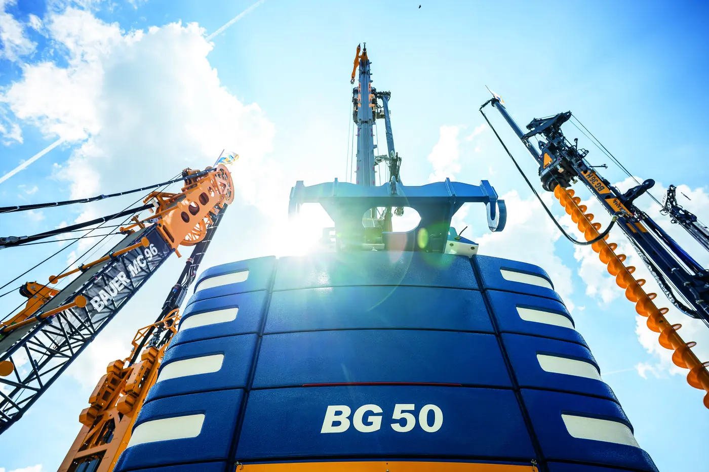 Nel segmento delle paratie a diaframma, è stato esposto il carrier GB 80 S equipaggiato con benna idraulica DHG/V, in grado di realizzare diaframmi fino a 80 metri di profondità e 1,8 metri di larghezza. Per condizioni geotecniche particolarmente impegnative sono disponibili argani a caduta libera monostadio. Il pacchetto Energy-Efficient Power (EEP), dotato di sistema di recupero dell’energia, consente una riduzione dei consumi energetici. Bauer ha inoltre esposto la gru da fondazioni MC 96 con contrappeso impilabile di nuova concezione, equipaggiata con cutter BC 35 e sistema tamburo per tubi HDS 135 T, che estende la profondità di scavo fino a 135 metri consentendo la rotazione fino a tale quota. In esposizione anche il cutter per soil mixing BCM 5 L, con lunghezza di trincea di 2.800 mm, soluzione ampiamente utilizzata nei cantieri.