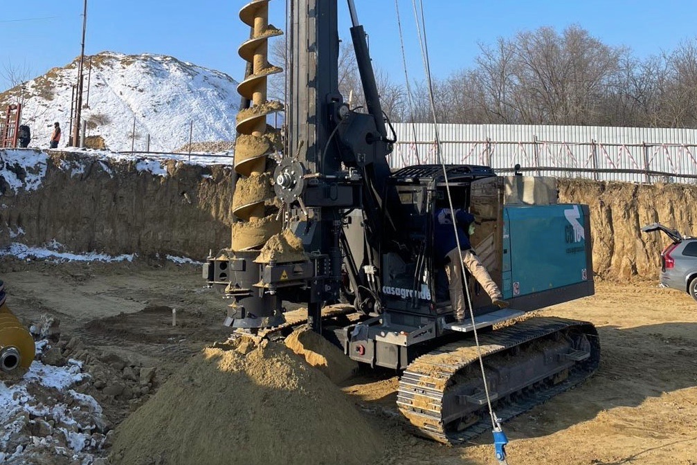 A Chisinau, in Moldavia, sono in corso i lavori di fondazione per il complesso residenziale “Metropolis”. In questo progetto, l’impresa di fondazioni incaricata utilizza una Casagrande CB16 configurata per pali CFA (Continuous Flight Auger). Questa configurazione è particolarmente adatta a contesti urbani come il progetto Metropolis, dove il controllo dei parametri esecutivi e la riduzione dell’impatto acustico rappresentano requisiti fondamentali. Il diametro dei pali da realizzare è di 600 mm, a una profondità di 16 m.